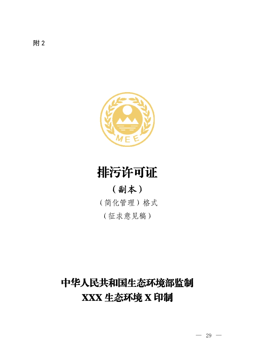 附件:1.關(guān)于發(fā)布排污許可證(副本)格式的通知(征求意見(jiàn)稿)