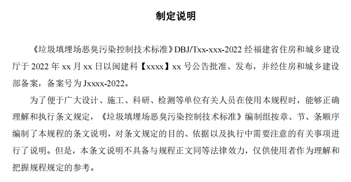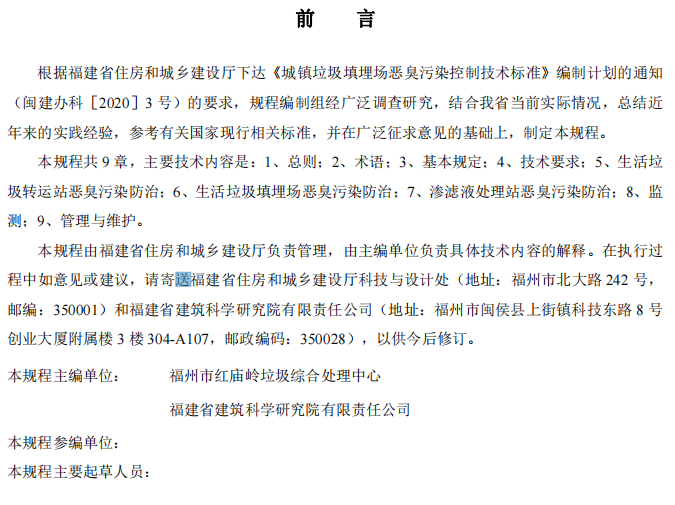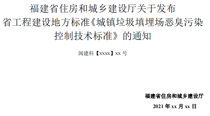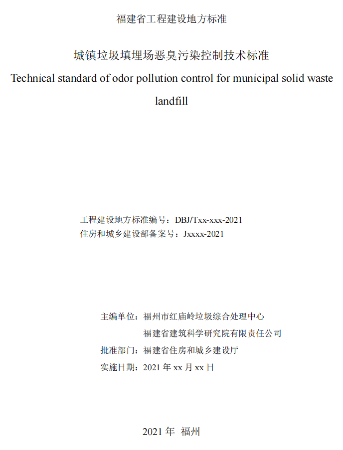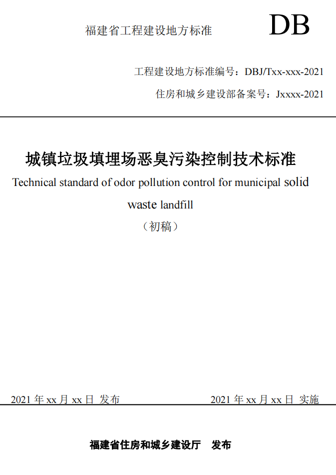 《福建省城鎮(zhèn)垃圾填埋場(chǎng)惡臭污染控制技術(shù)標(biāo)準(zhǔn)》(征求意見稿)