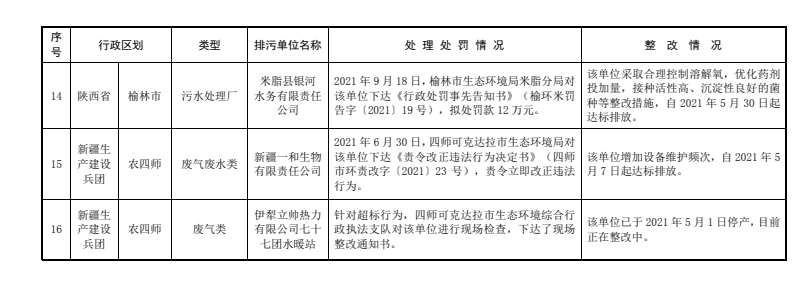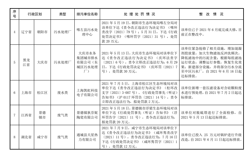 《關(guān)于2021年第二季度主要污染物排放嚴(yán)重超標(biāo)重點(diǎn)排污單位名單和處理處罰整改情況的函》