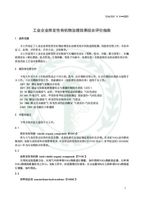《工業(yè)企業(yè)揮發(fā)性有機(jī)物治理效果綜合評價指南(征求意見稿)》