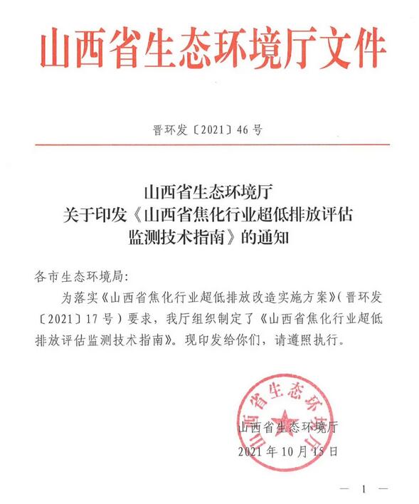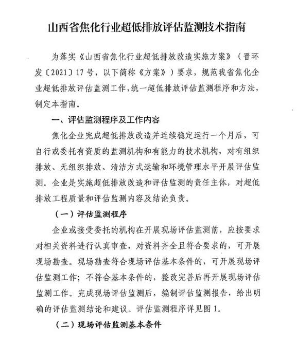 《山西省焦化行業(yè)超低排放評(píng)估監(jiān)測(cè)技術(shù)指南》(晉環(huán)發(fā)【2021】46號(hào))