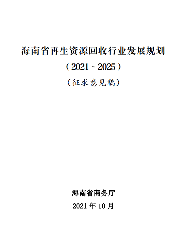 《海南省再生資源回收行業(yè)發(fā)展規(guī)劃(2021~2025)》(征求意見稿)