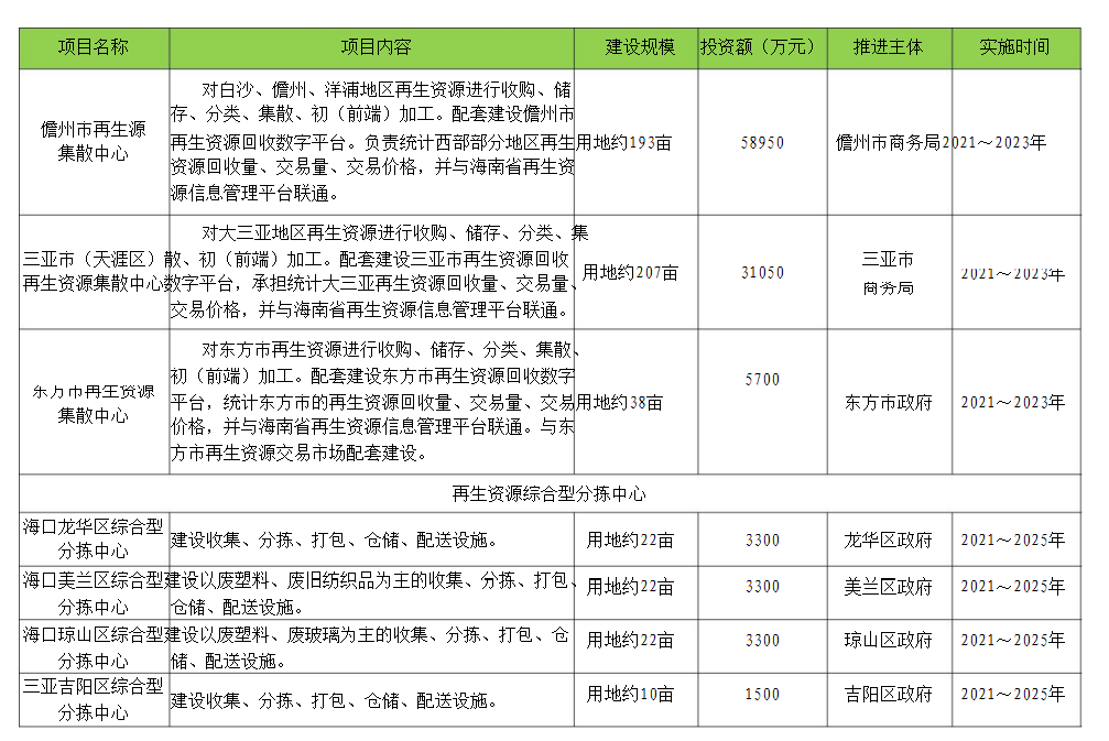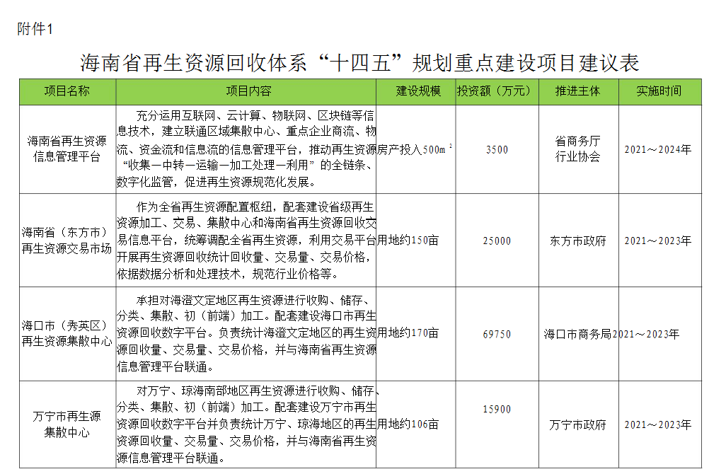 附件:1.海南省再生資源回收行業(yè)規(guī)劃(2021~2025)重點(diǎn)建設(shè)項(xiàng)目建議表