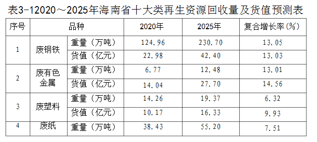 3.海南省再生資源回收行業(yè)規(guī)劃(2021~2025)主要數(shù)據(jù)說明