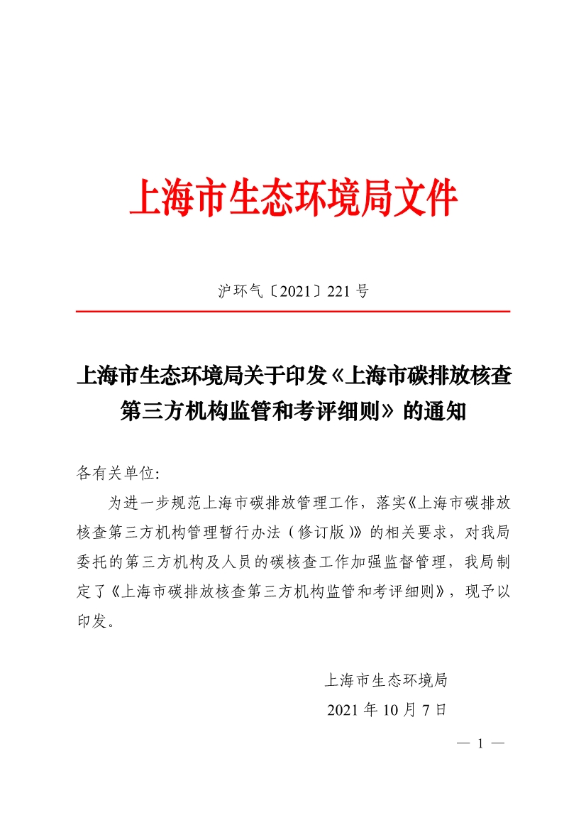 《上海市碳排放核查第三方機(jī)構(gòu)監(jiān)管和考評(píng)細(xì)則》(滬環(huán)氣【2021】221號(hào))