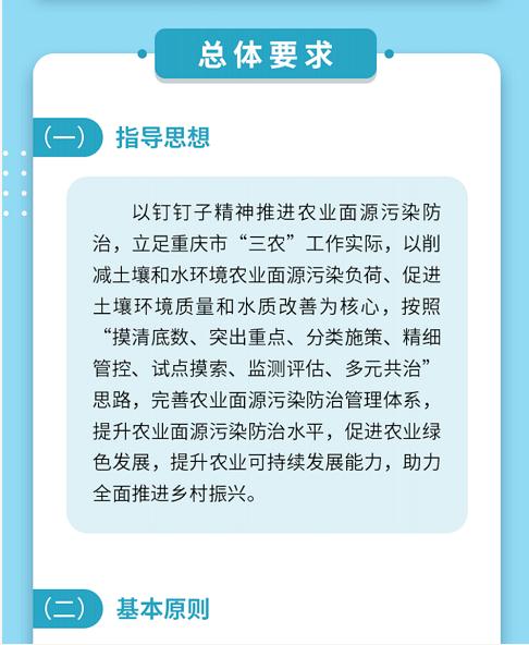 農(nóng)業(yè)面源污染防治是當(dāng)前生態(tài)環(huán)境保護(hù)工作的突出難點和短板,事關(guān)農(nóng)業(yè)綠色發(fā)展,事關(guān)城鄉(xiāng)居民的水缸子、米袋子、菜藍(lán)子,事關(guān)農(nóng)村生態(tài)文明建設(shè),事關(guān)鄉(xiāng)村振興戰(zhàn)略總目標(biāo)的實現(xiàn)。重慶市農(nóng)業(yè)面源污染防治工作如何推進(jìn)?近日,市生態(tài)環(huán)境局、市農(nóng)業(yè)農(nóng)村委聯(lián)合印發(fā)《重慶市農(nóng)業(yè)面源污染治理與監(jiān)督指導(dǎo)工作方案》(以下簡稱《方案》)。
