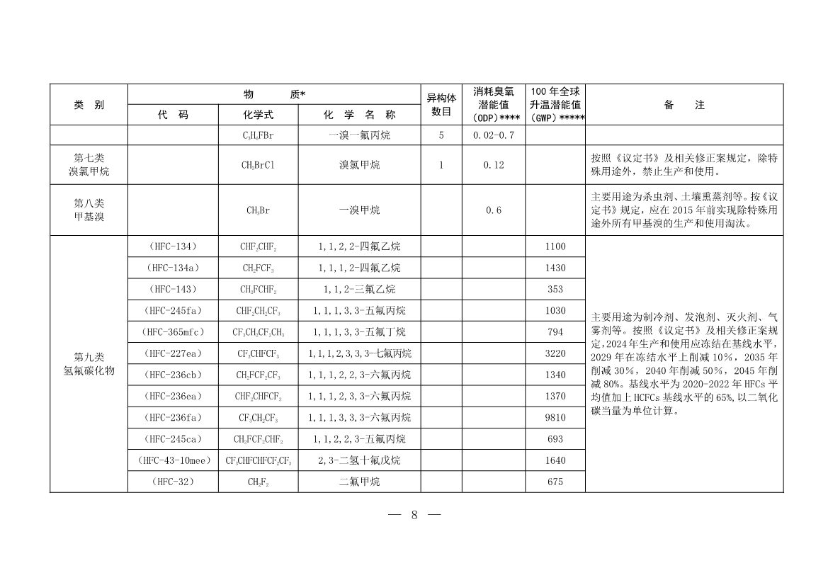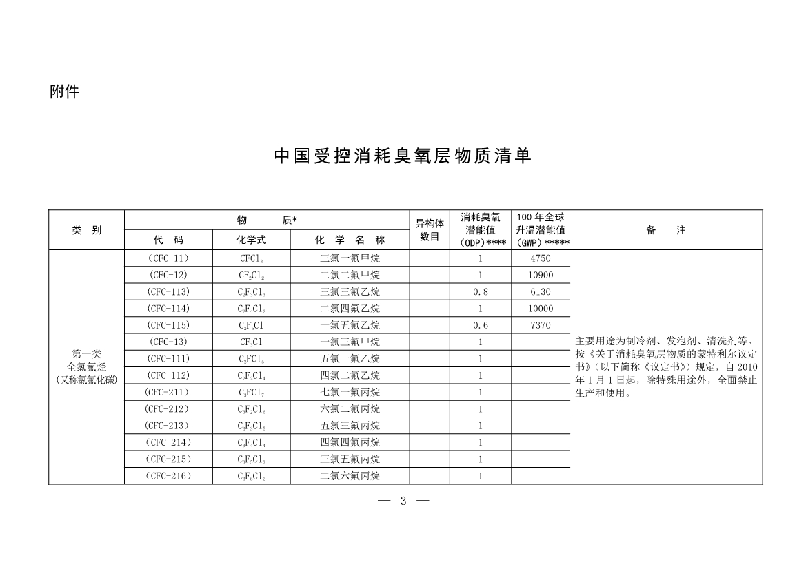 附件:中國受控消耗臭氧層物質(zhì)清單