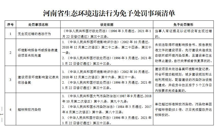 《河南省生態(tài)環(huán)境違法行為免予處罰事項(xiàng)清單》