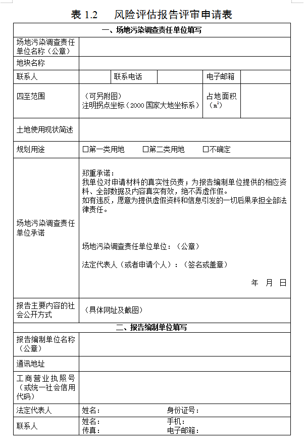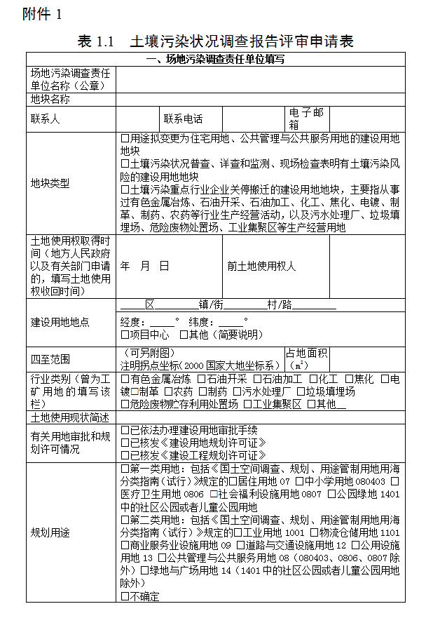 1.申請表(pdf蓋章掃描件一份,附件1);《天津市建設用地土壤污染狀況調查、風險評估、風險管控及修復效果評估報告評審細則(試行)》
