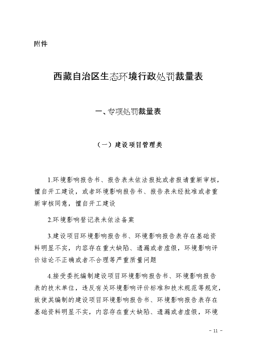 西藏自治區(qū)生態(tài)環(huán)境行政處罰裁量基準資料下載_模版下載_工作報告