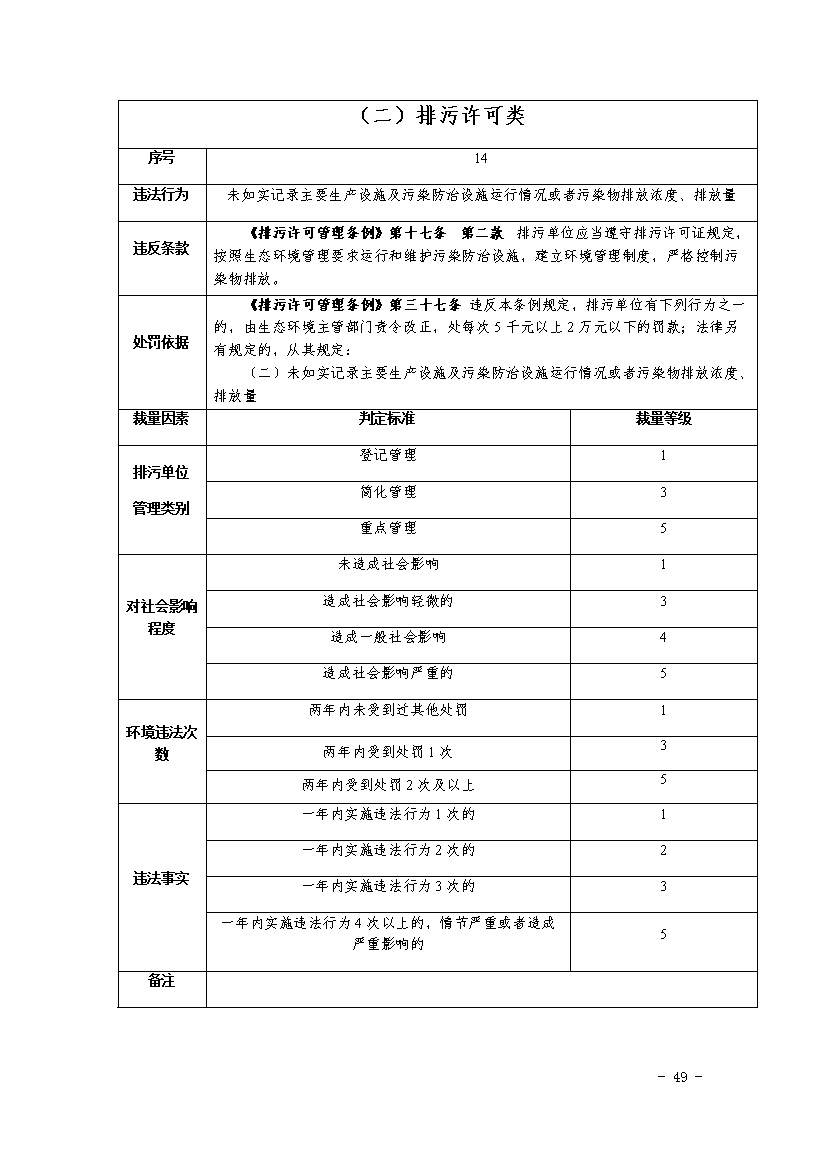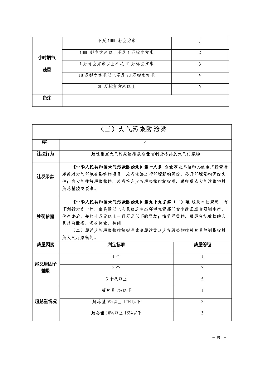 “排污超標狀況”存在多個污染因子超標的,以超標倍數(shù)最高的污染因子進行等級裁量;“小時煙氣流量”以超標當(dāng)日在線小時煙氣流量最高值認定;“水日排放量”以超標當(dāng)日在線污水排放量認定。《關(guān)于印發(fā)西藏自治區(qū)生態(tài)環(huán)境行政處罰裁量基準適用規(guī)定的通知》(藏環(huán)發(fā)〔2021〕77號)