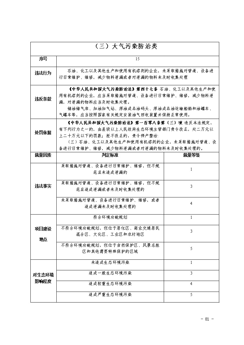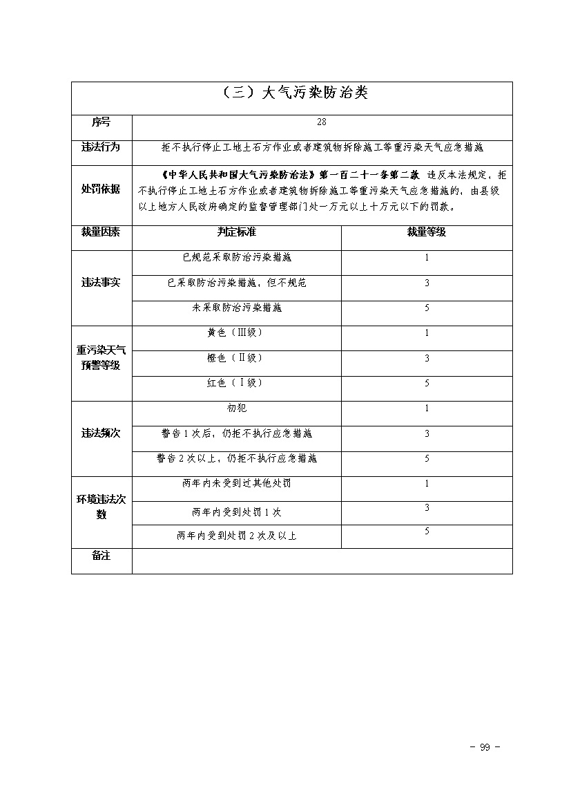 (二)重污染天氣預(yù)警期間實施超標排放大氣污染物等涉氣生態(tài)環(huán)境違法行為的;《關(guān)于印發(fā)西藏自治區(qū)生態(tài)環(huán)境行政處罰裁量基準適用規(guī)定的通知》(藏環(huán)發(fā)〔2021〕77號)