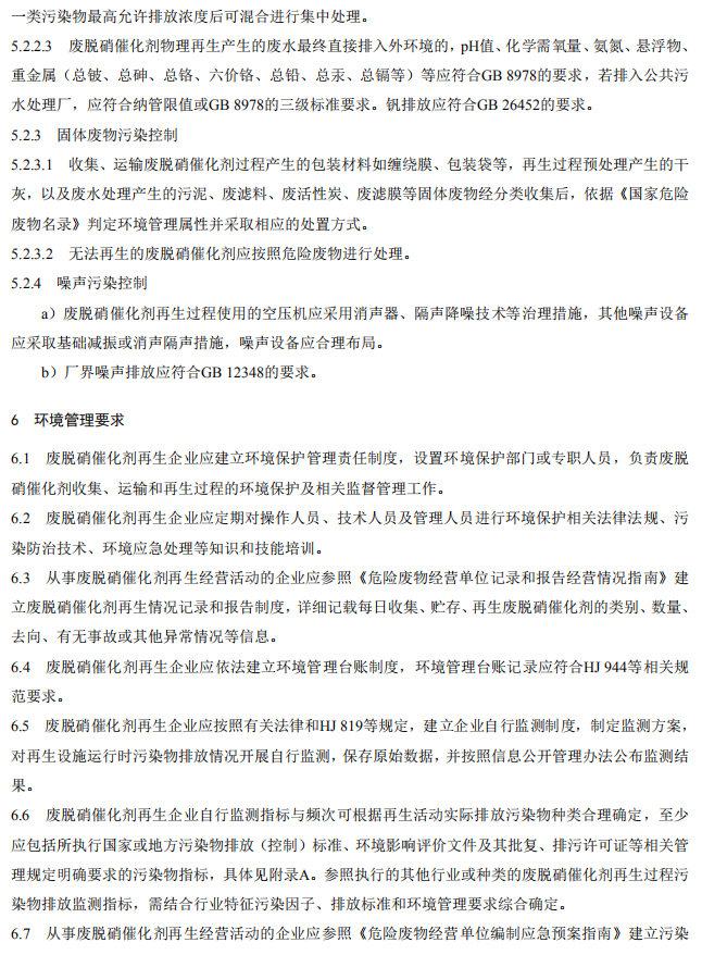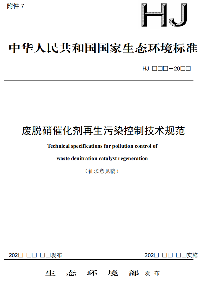 《廢脫硝催化劑再生污染控制技術(shù)規(guī)范》(征求意見(jiàn)稿)
