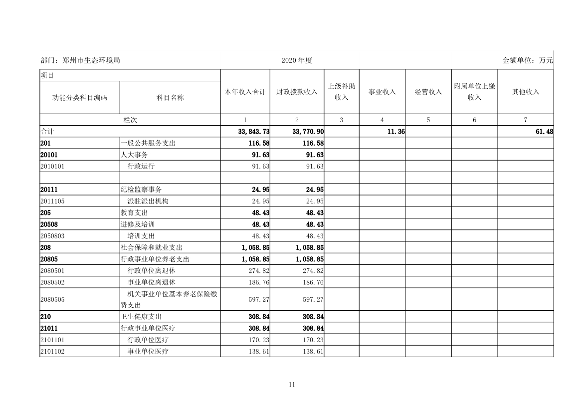 《2020年度鄭州市生態(tài)環(huán)境局部門決算》