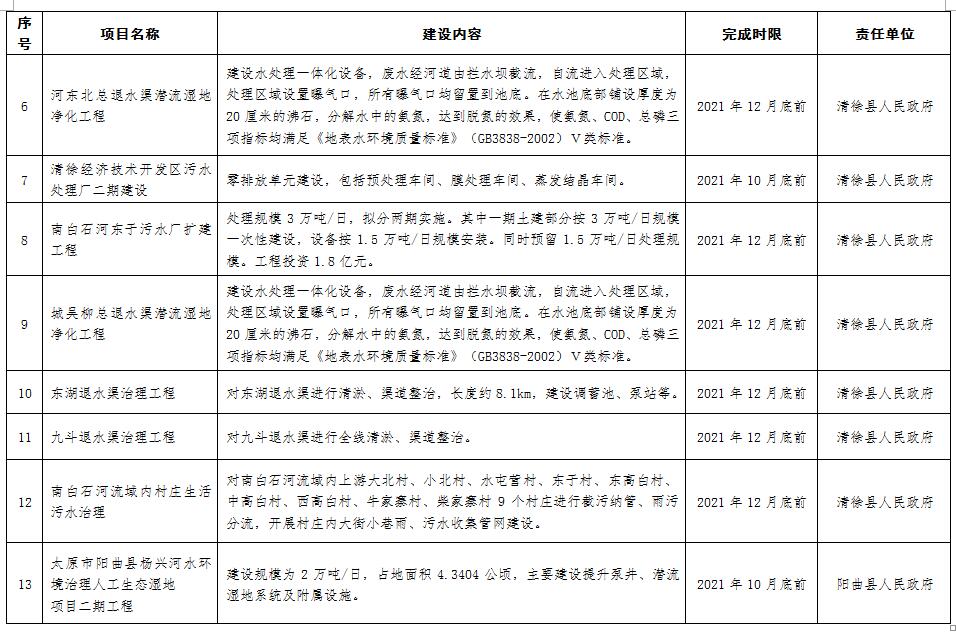 《太原市水環(huán)境質(zhì)量鞏固提升2021年行動計(jì)劃》(附項(xiàng)目清單)