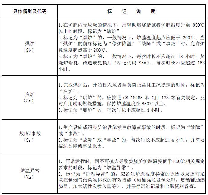 5.2 同一時段只能標記一種焚燒爐工況,垃圾焚燒廠應保存相應生產設施、污染防治設施運行記錄。《排污單位自動監(jiān)測數據工況標記規(guī)則-生活垃圾焚燒發(fā)電行業(yè)》(征求意見稿)