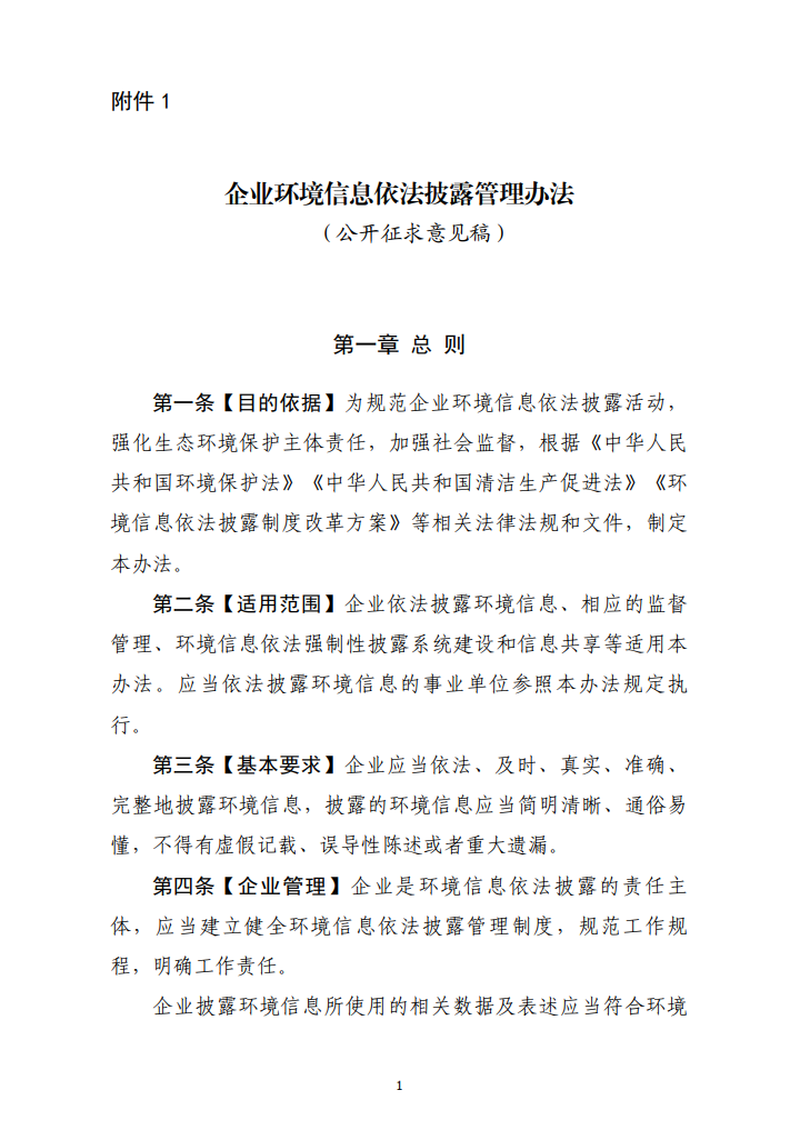 《企業(yè)環(huán)境信息依法披露管理辦法(公開征求意見稿)》