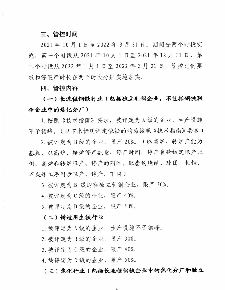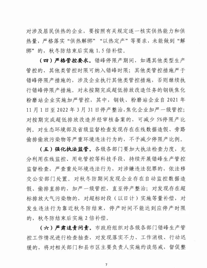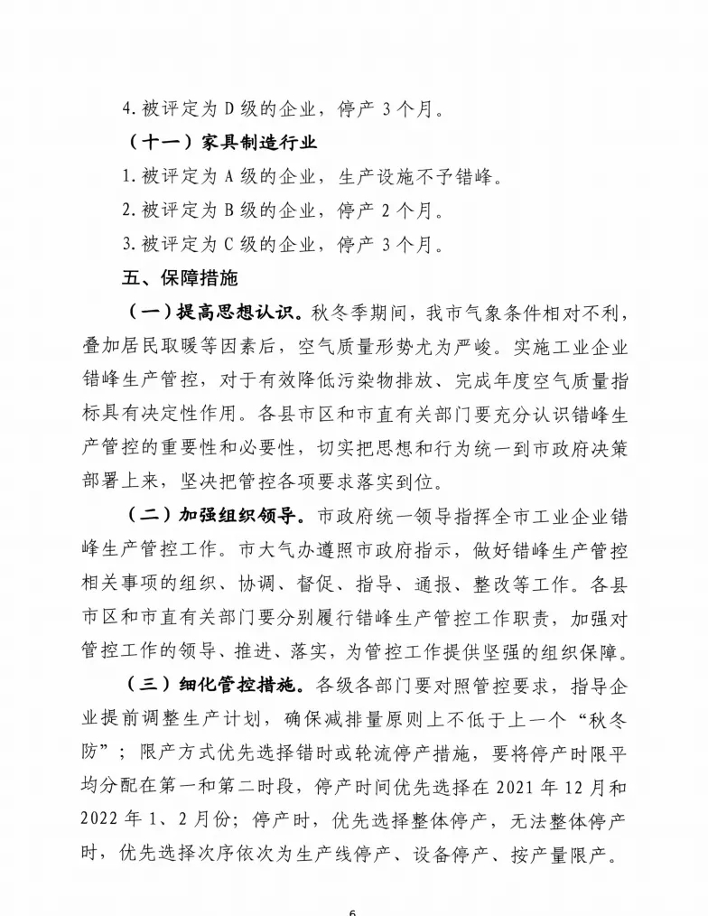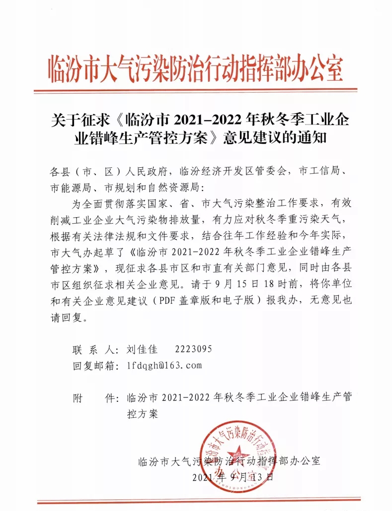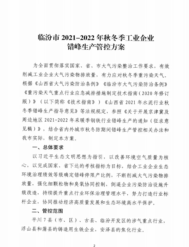 《臨汾市2021-2022年秋冬工業(yè)企業(yè)錯(cuò)峰生產(chǎn)管控方案》