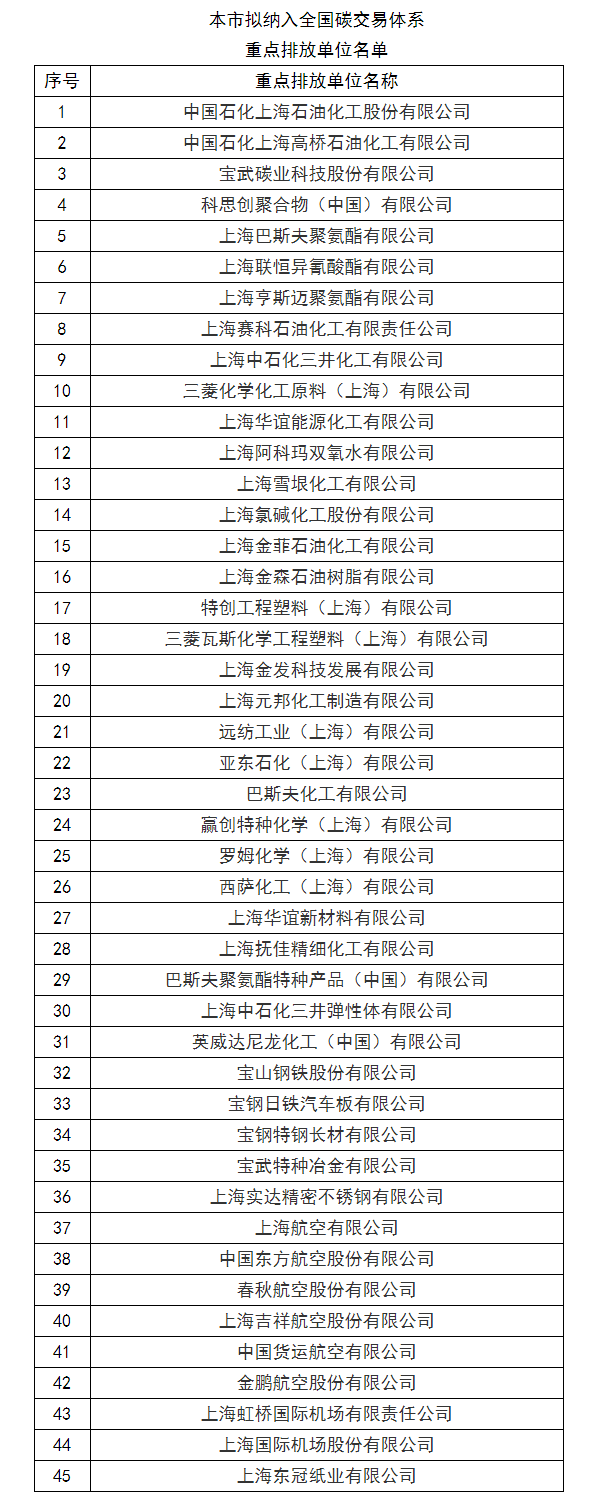 附件:1. 本市擬納入全國碳交易體系重點(diǎn)排放單位名單