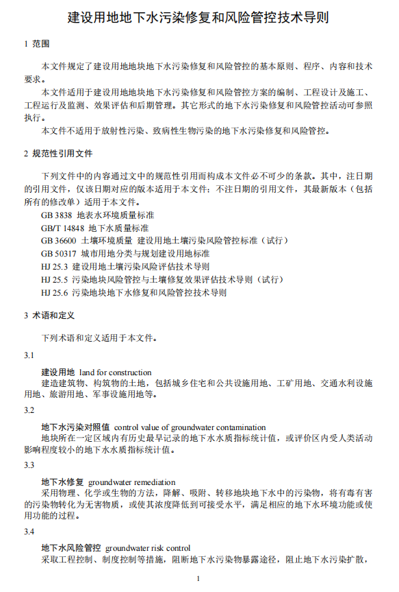 2.建設(shè)用地地下水污染修復(fù)和風(fēng)險(xiǎn)管控技術(shù)導(dǎo)則(征求意見稿)