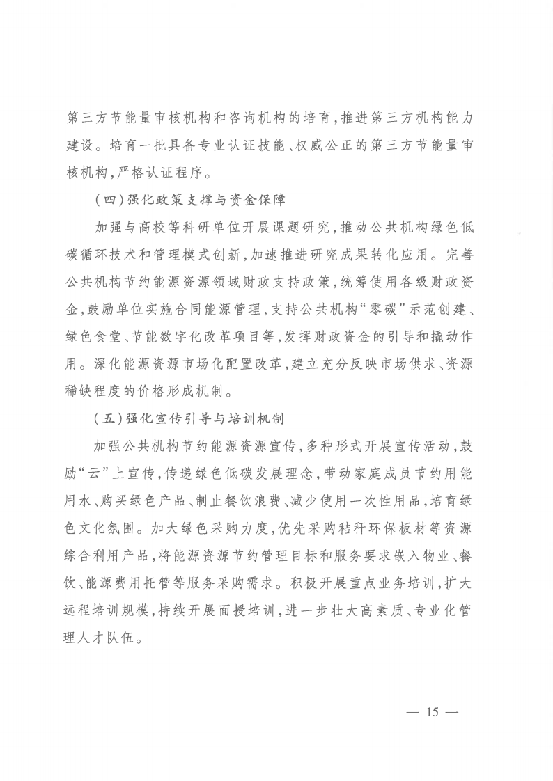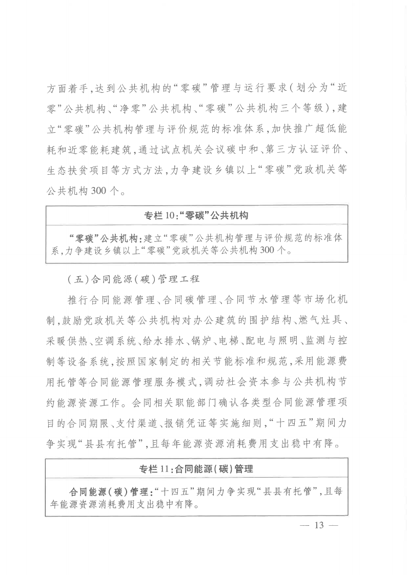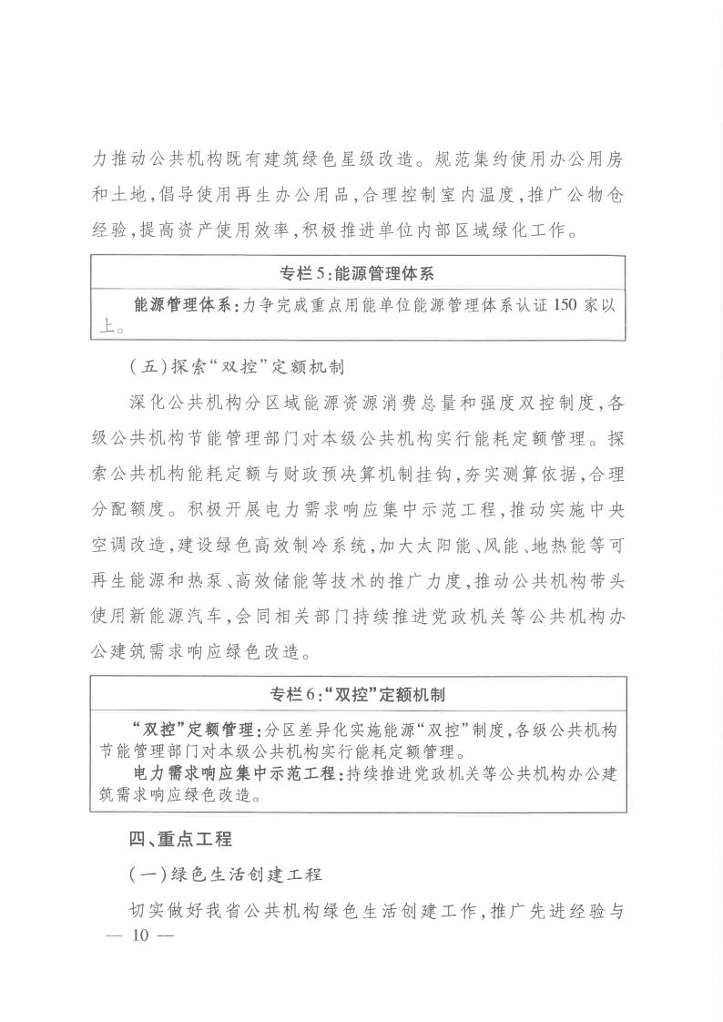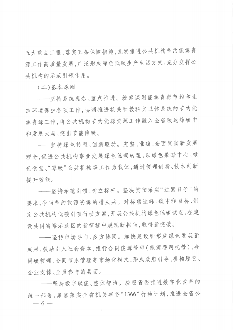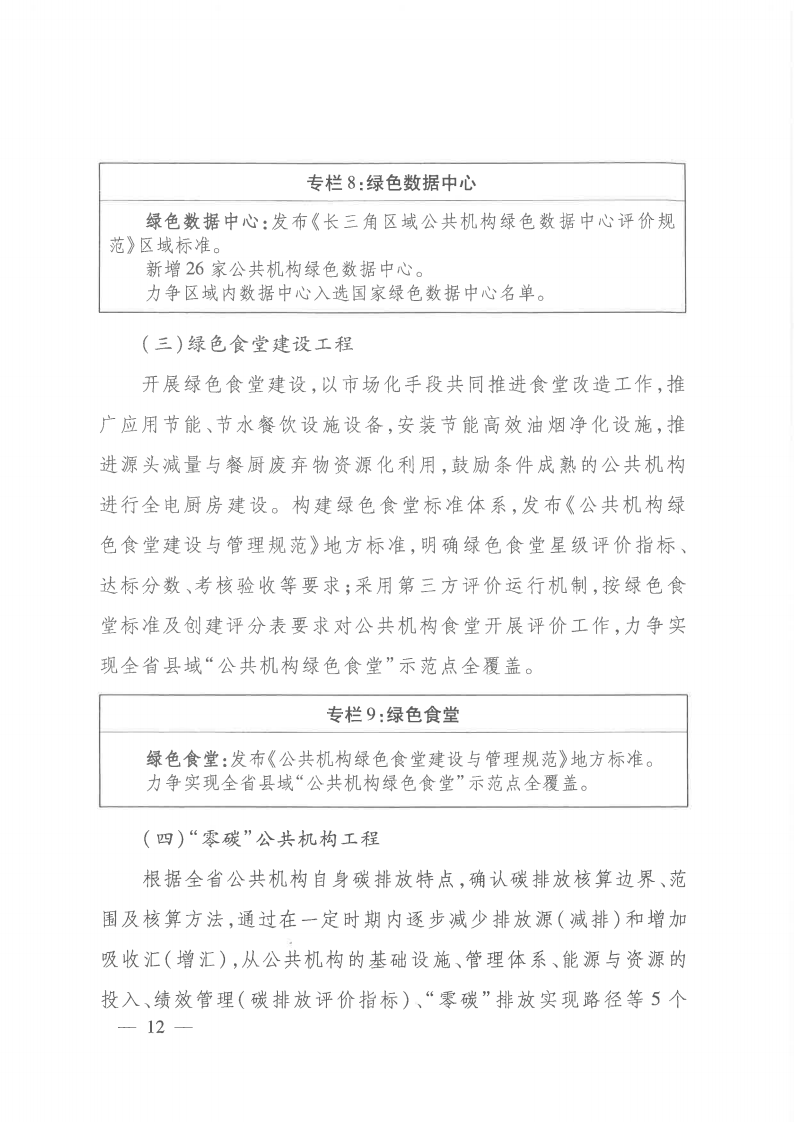 “十四五”期間,我省還將推進(jìn)綠色生活創(chuàng)建工程、綠色數(shù)據(jù)中心工程、綠色食堂建設(shè)工程、“零碳”公共機(jī)構(gòu)工程、合同能源(碳)管理工程這五大重點(diǎn)工程,力爭(zhēng)全省80%以上的縣級(jí)及以上黨政機(jī)關(guān)建成節(jié)約型機(jī)關(guān)、全省70%以上的高等院校建成綠色學(xué)校,進(jìn)入重點(diǎn)用能單位的醫(yī)療機(jī)構(gòu)完成智慧后勤綜合管控系統(tǒng)建設(shè);新增26家公共機(jī)構(gòu)綠色數(shù)據(jù)中心;力爭(zhēng)實(shí)現(xiàn)全省縣域“公共機(jī)構(gòu)綠色食堂”示范點(diǎn)全覆蓋;建立“零碳”公共機(jī)構(gòu)管理與評(píng)價(jià)規(guī)范的標(biāo)準(zhǔn)體系,建設(shè)鄉(xiāng)鎮(zhèn)以上“零碳”黨政機(jī)關(guān)等公共機(jī)構(gòu)300個(gè);力爭(zhēng)每年能源資源消耗費(fèi)用支出穩(wěn)中有降。