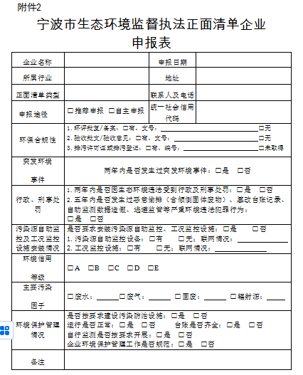 2.寧波市生態(tài)環(huán)境監(jiān)督執(zhí)法正面清單企業(yè)申報(bào)表