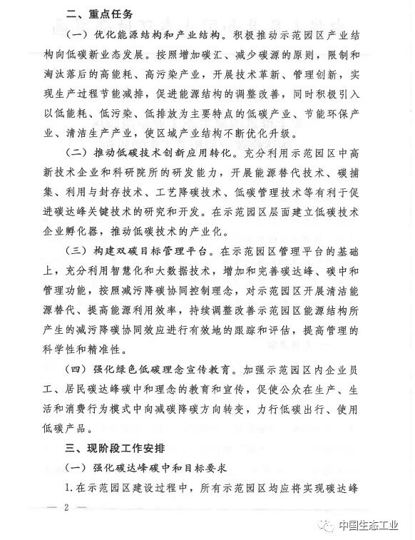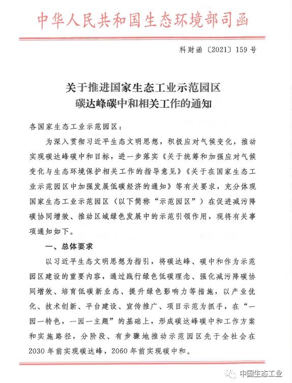 《關(guān)于推進(jìn)國家生態(tài)工業(yè)示范園區(qū)碳達(dá)峰碳中和相關(guān)工作的通知》