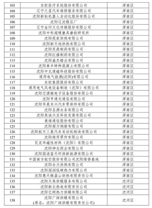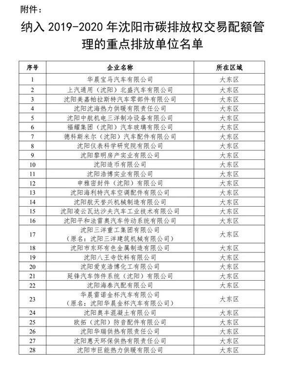 《納入2019年-2020年沈陽市碳排放權(quán)交易配額管理的重點排放單位名單》
