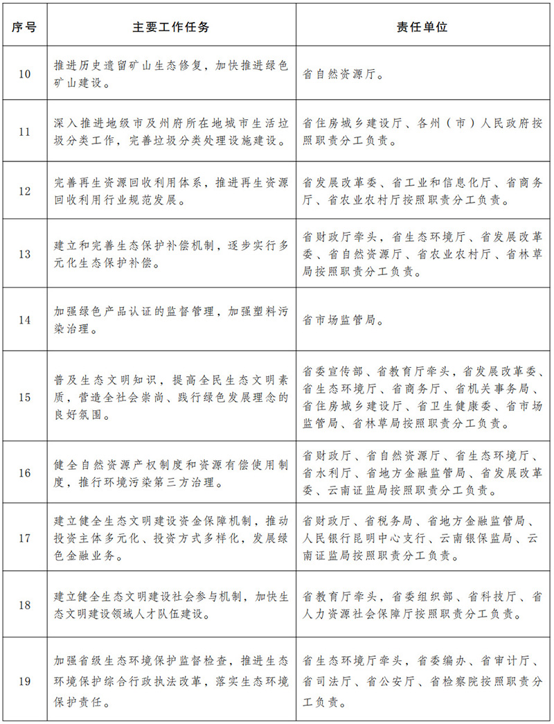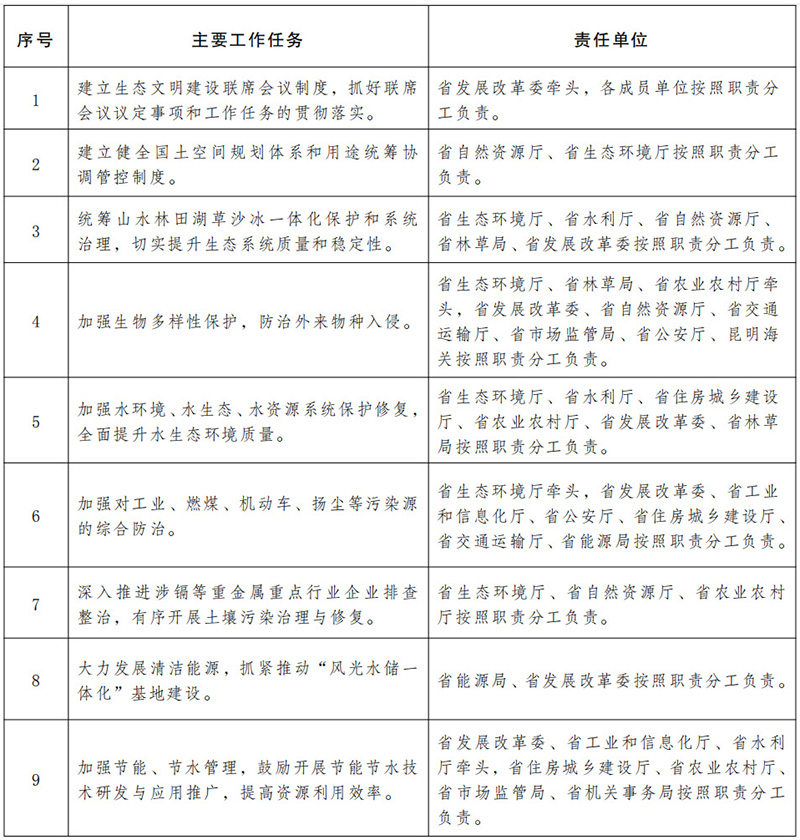 附件:云南省創(chuàng)建生態(tài)文明建設(shè)排頭兵促進(jìn)條例實施細(xì)則主要工作任務(wù)清單