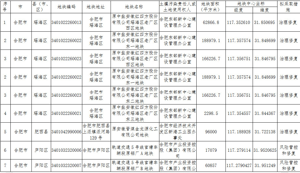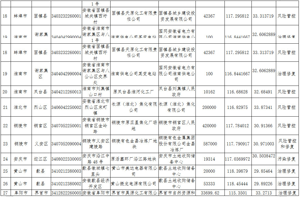 安徽省生態(tài)環(huán)境廳安徽省自然資源廳關(guān)于更新《安徽省建設(shè)用地土壤污染風(fēng)險(xiǎn)管控和修復(fù)名錄》的公告