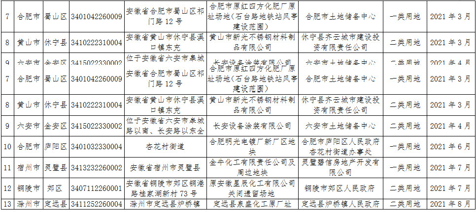 安徽省建設(shè)用地土壤污染風(fēng)險(xiǎn)管控和修復(fù)名錄(2021年8月)
