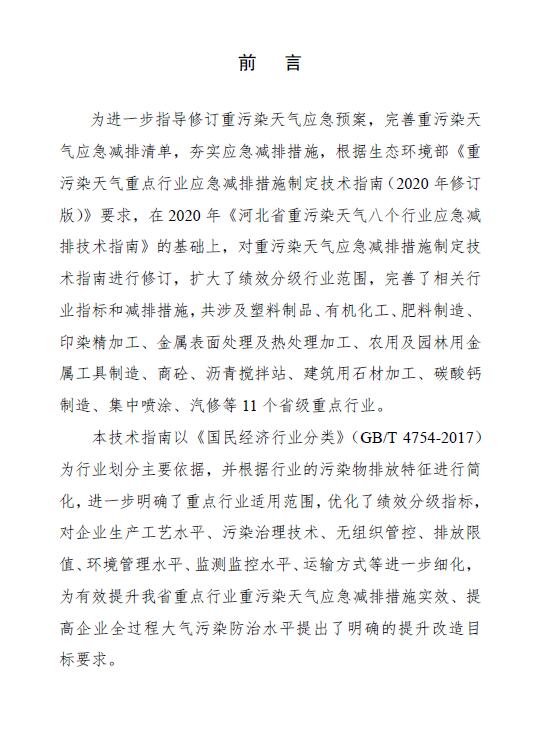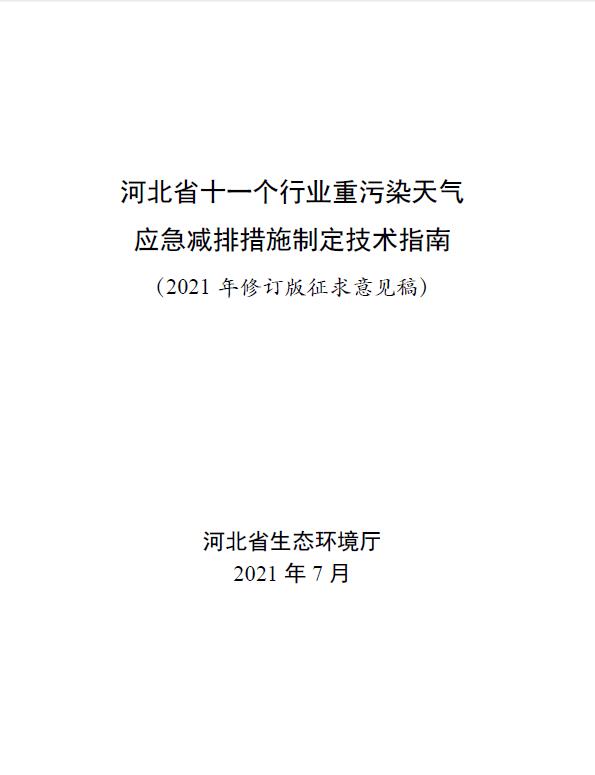 《河北省十一個行業(yè)重污染天氣應(yīng)急減排措施制定技術(shù)指南》(2021年修訂版征求意見稿)