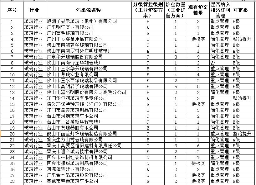 廣東省玻璃行業(yè)工業(yè)爐窯分級管控表