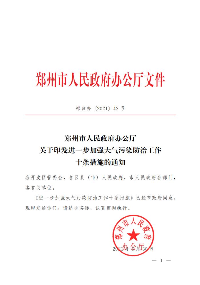 《鄭州進(jìn)一步加強(qiáng)大氣污染防治工作十條措施》(鄭政辦【2021】42號)