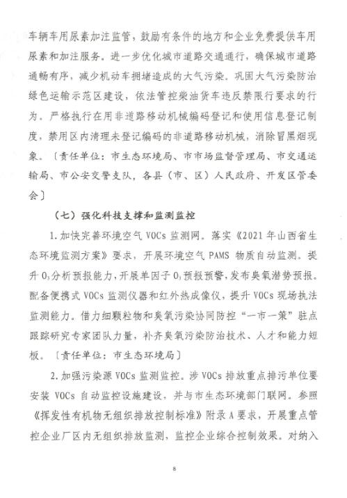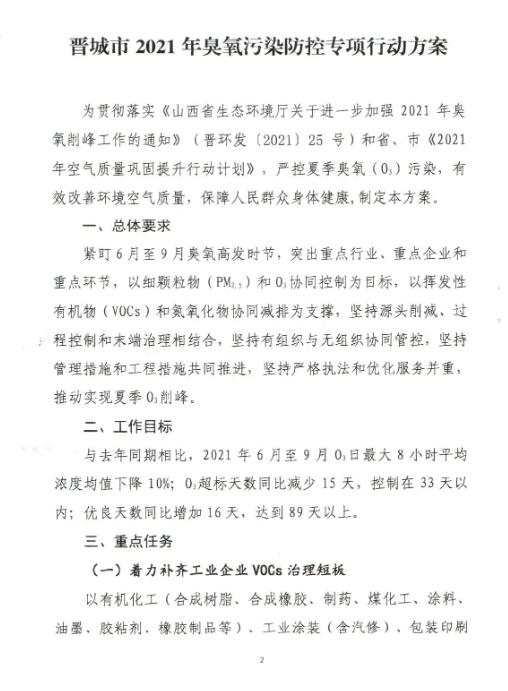 《晉城市2021年臭氧污染防控專項(xiàng)行動(dòng)方案》(晉市氣環(huán)辦【2021】9號(hào))