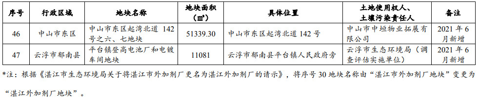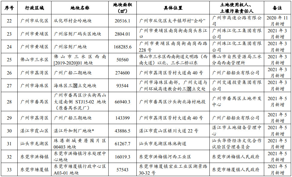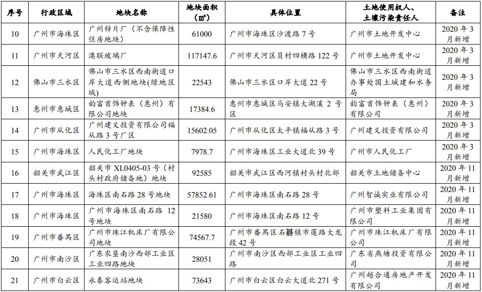 廣東省建設(shè)用地土壤污染風(fēng)險管控和修復(fù)名錄 (2021 年 6 月更新)