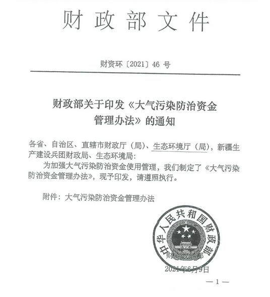 《大氣污染防治資金管理辦法》(財(cái)資環(huán)【2021】46號(hào))