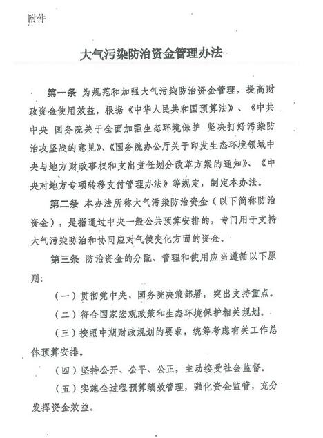 日前,財(cái)政部印發(fā)《大氣污染防治資金管理辦法》。旨在加強(qiáng)大氣污染防治資金管理,提升生態(tài)環(huán)境保護(hù)管理水平。詳情如下: