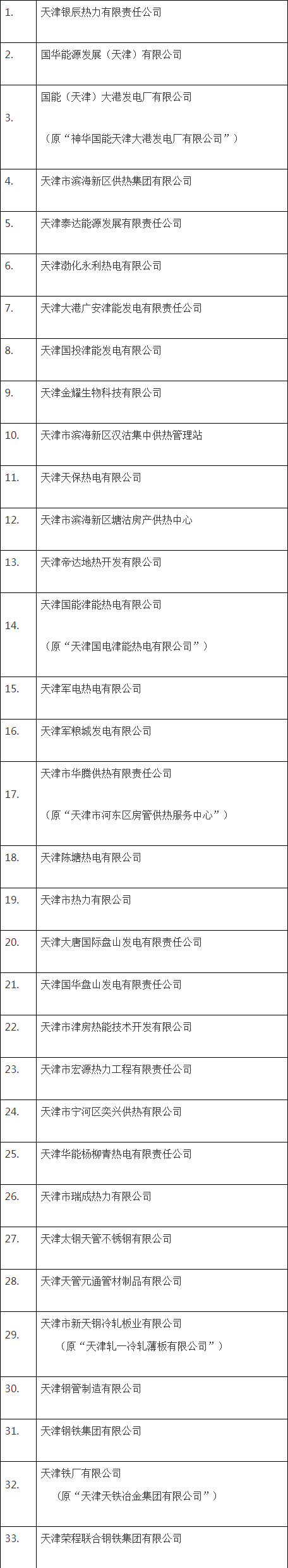 天津市碳排放權(quán)交易試點(diǎn)納入企業(yè)2020年度履約名單