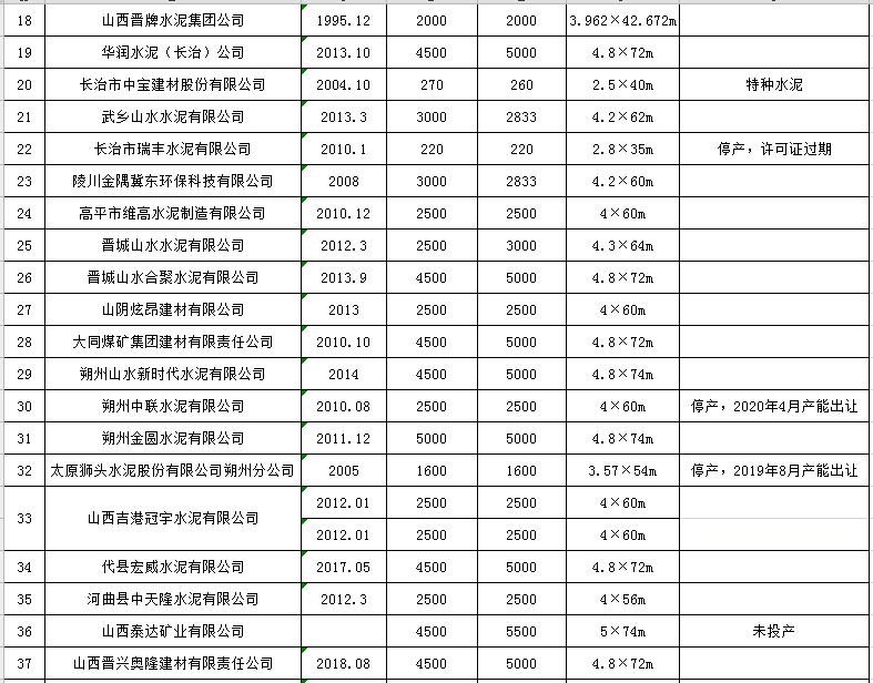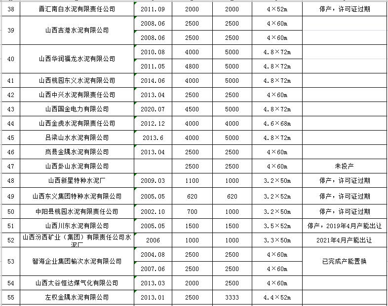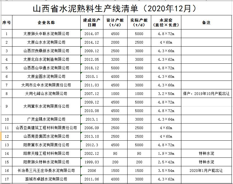 日前,山西公布山西省水泥熟料平板玻璃生產(chǎn)線清單(2020年)。詳情如下: