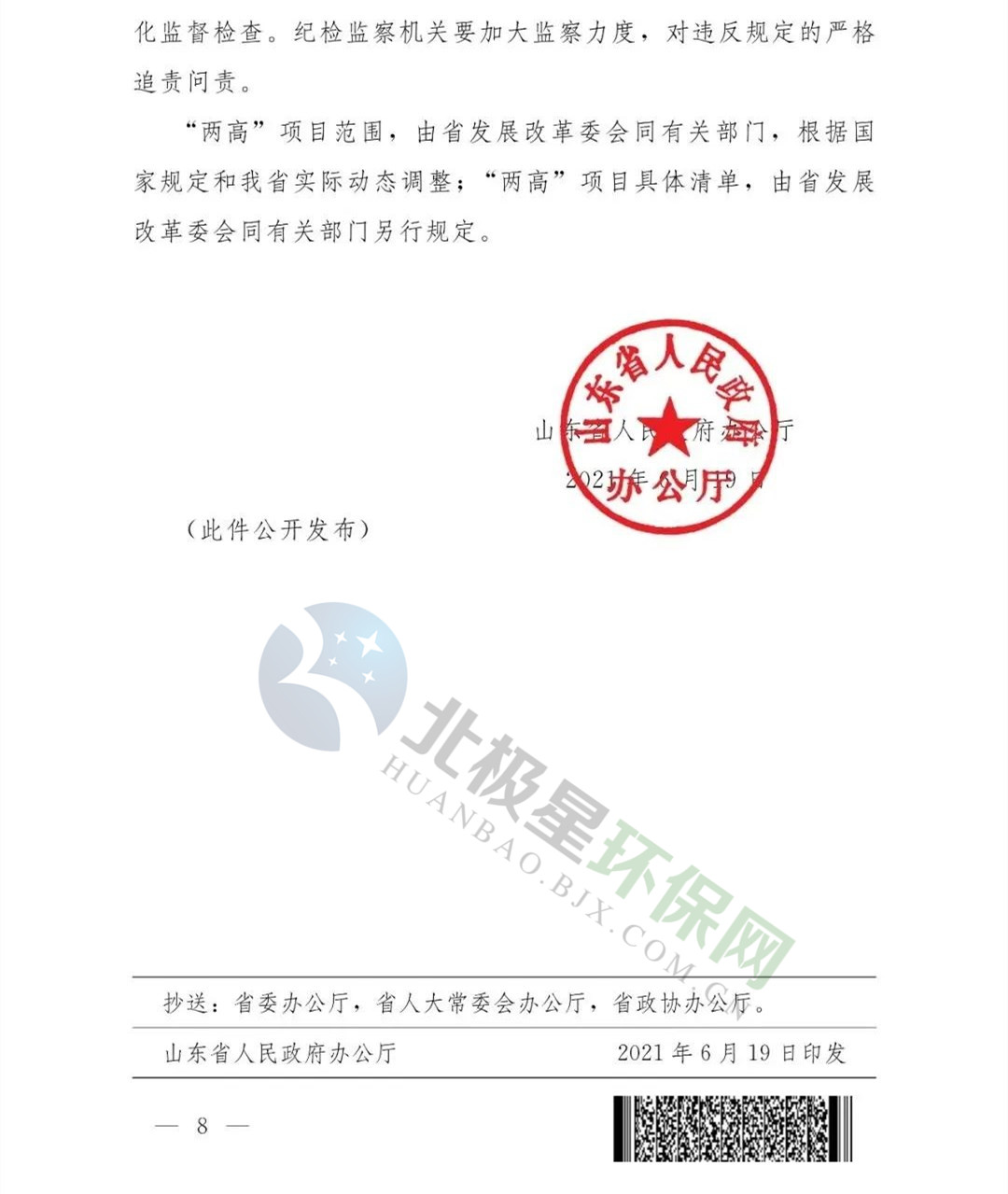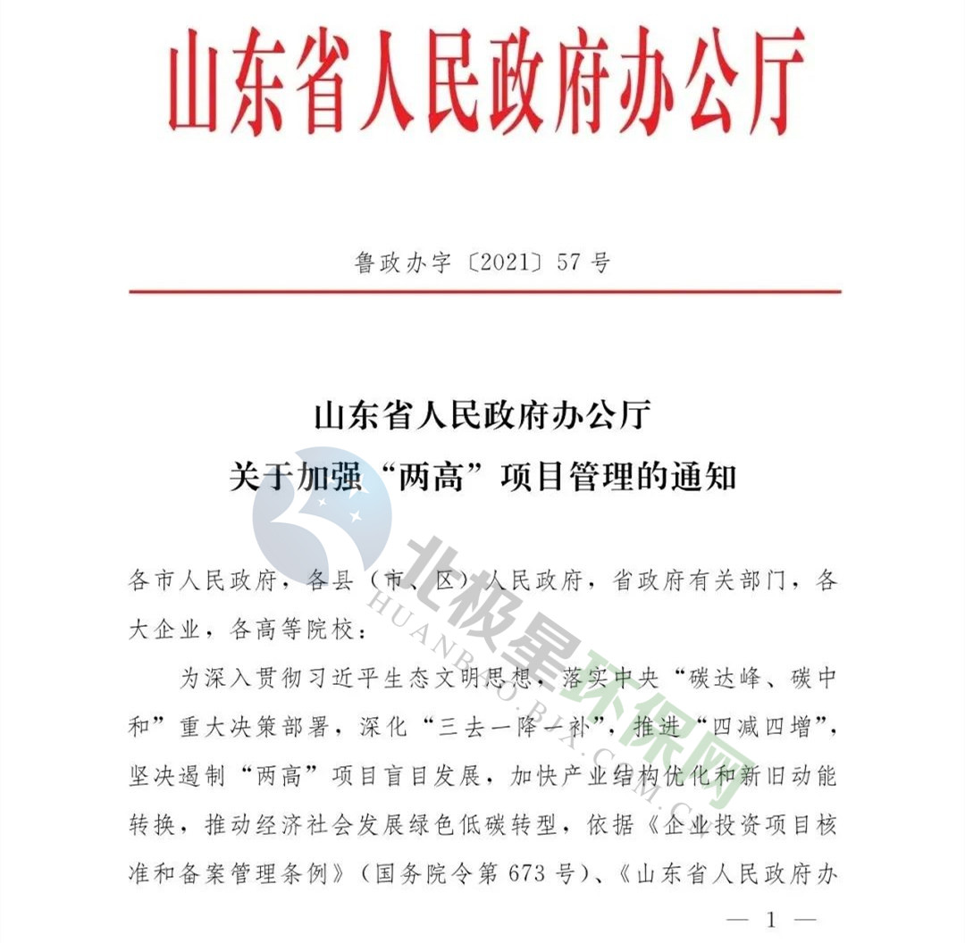 《山東省關于加強兩高項目管理的通知》(魯政辦字【2021】57號)