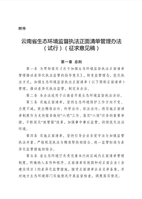 《云南省生態(tài)環(huán)境監(jiān)督執(zhí)法正面清單管理辦法 (試行)》(征求意見稿)