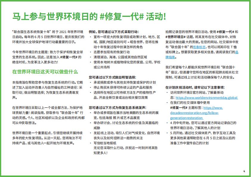 1.采取行動(dòng),例如發(fā)起或支持實(shí)地的生態(tài)修復(fù)項(xiàng)目
