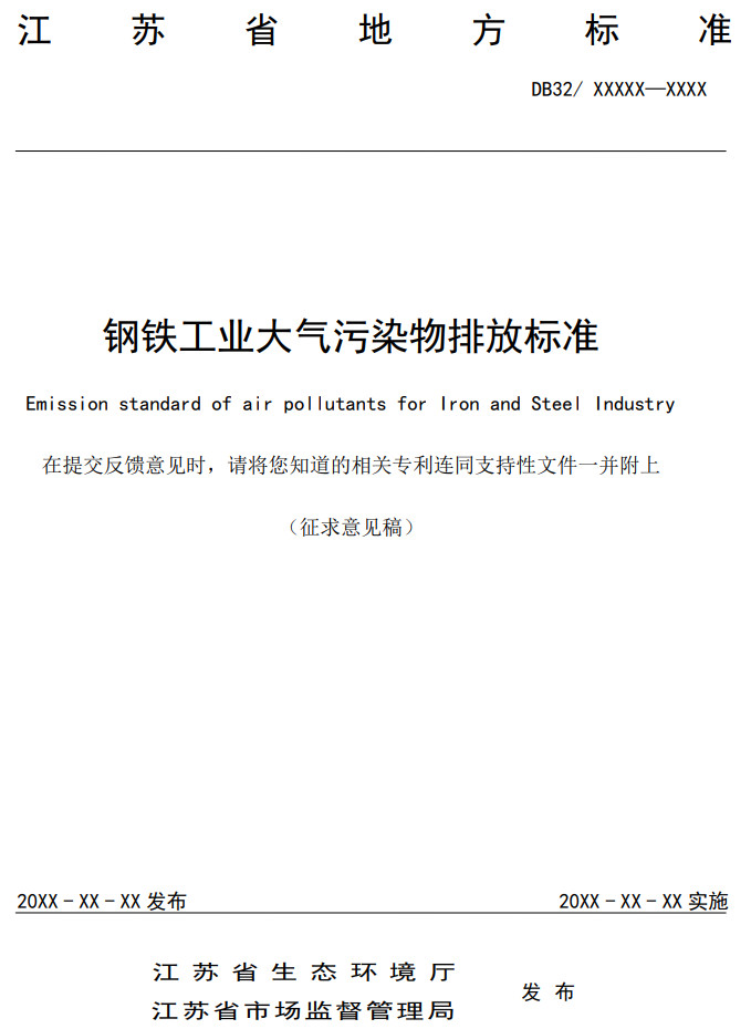 《江蘇印發(fā) 鋼鐵工業(yè)大氣污染物排放標(biāo)準(zhǔn)(征求意見稿)》