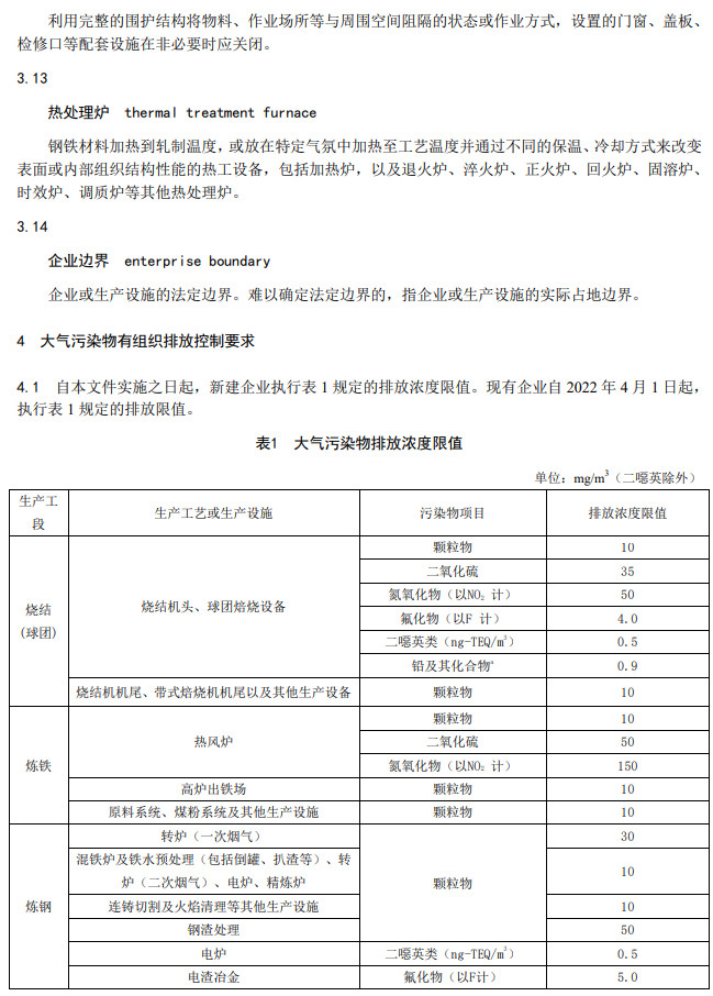 鋼鐵工業(yè)大氣污染物排放標(biāo)準(zhǔn)(征求意見稿)