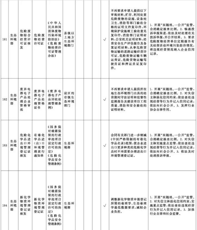 (一)直接取消審批。為在外資外貿(mào)、工程建設、交通物流、中介服務等領域破解“準入不準營”問題,在全國范圍內(nèi)取消68項涉企經(jīng)營許可事項,在自由貿(mào)易試驗區(qū)試點取消14項涉企經(jīng)營許可事項。取消審批后,企業(yè)(含個體工商戶、農(nóng)民專業(yè)合作社,下同)取得營業(yè)執(zhí)照即可開展經(jīng)營,行政機關、企事業(yè)單位、行業(yè)組織等不得要求企業(yè)提供相關行政許可證件。