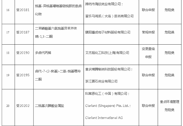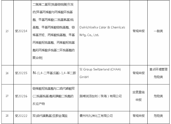 附表:2021年第3批新化學(xué)物質(zhì)環(huán)境管理登記證(常規(guī)申報(bào))批準(zhǔn)情況表大牛工程師