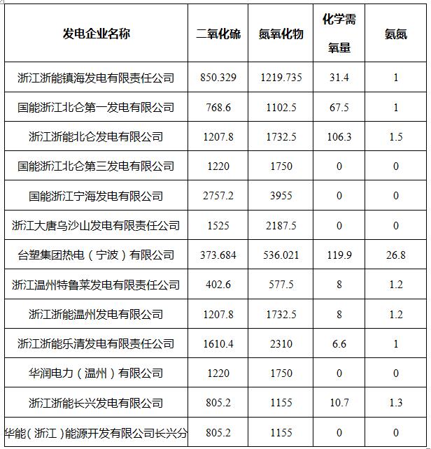 《浙江省總裝機(jī)容量30萬千瓦以上燃煤發(fā)電企業(yè)“十四五”主要污染物初始排污權(quán)核定結(jié)果》