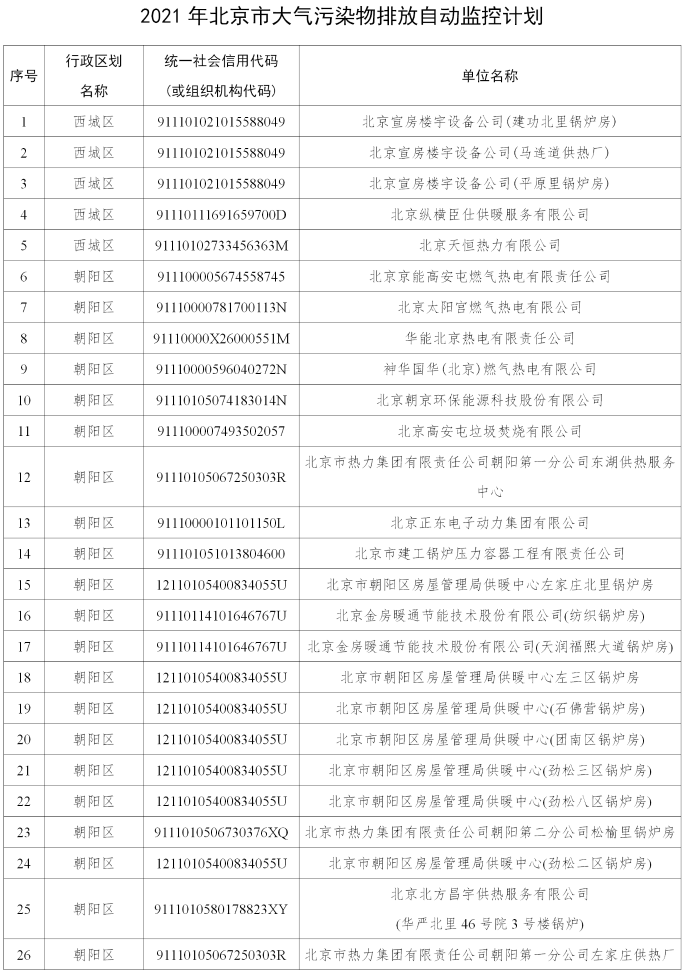 北京市生態(tài)環(huán)境局關于印發(fā)《2021年北京市大氣污染物排放 自動監(jiān)控計劃》的通知