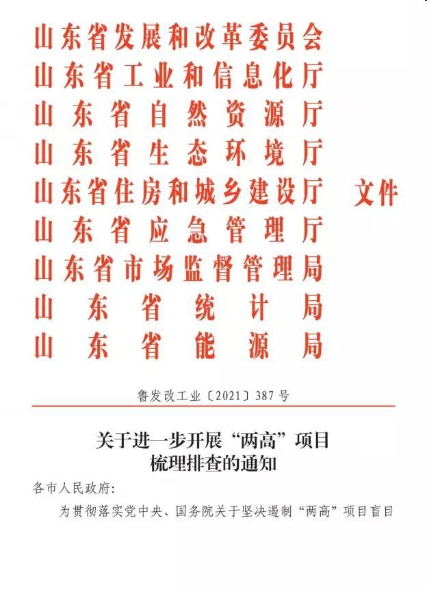 近日,山東省發(fā)展改革委、山東省工信廳等9部門(mén)發(fā)布《關(guān)于進(jìn)一步開(kāi)展“兩高”項(xiàng)目梳理排查的通知》)(魯發(fā)改工業(yè)[2021]387號(hào)),就進(jìn)一步開(kāi)展“兩高”項(xiàng)目梳理排查工作作了部署。同時(shí),文件公布了“兩高”項(xiàng)目清單,共16類產(chǎn)業(yè):鋼鐵、鐵合金、電解鋁(含氧化鋁,但不含非冶金級(jí)氧化鋁)、水泥、石灰、建筑陶瓷、平板玻璃、煤電、煉化、甲醇、焦化、氮肥、醋酸、氯堿、電石、瀝青防水材料。有色金屬壓延加工、炭素不在清單之列。